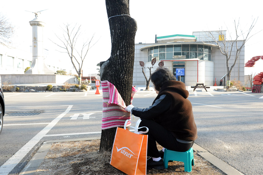 지난 겨울 따뜻하게 나라고 입혔줬던 나무 겨울옷들을 벗겨냈습니다.