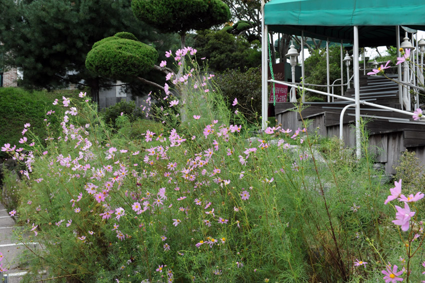 서늘한 바람소리에 물결치는 청아동산의 나뭇잎들과 하늘거리는 코스모스의 손짓,