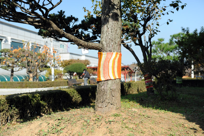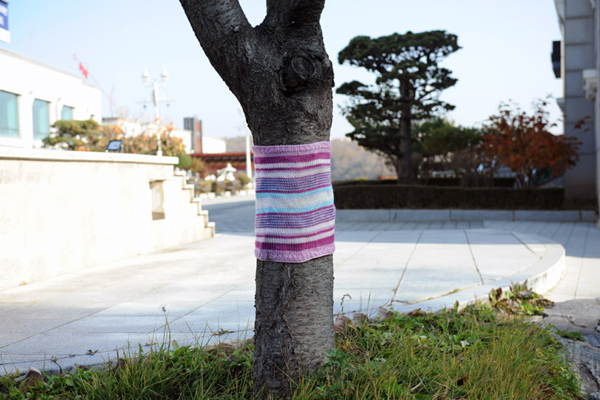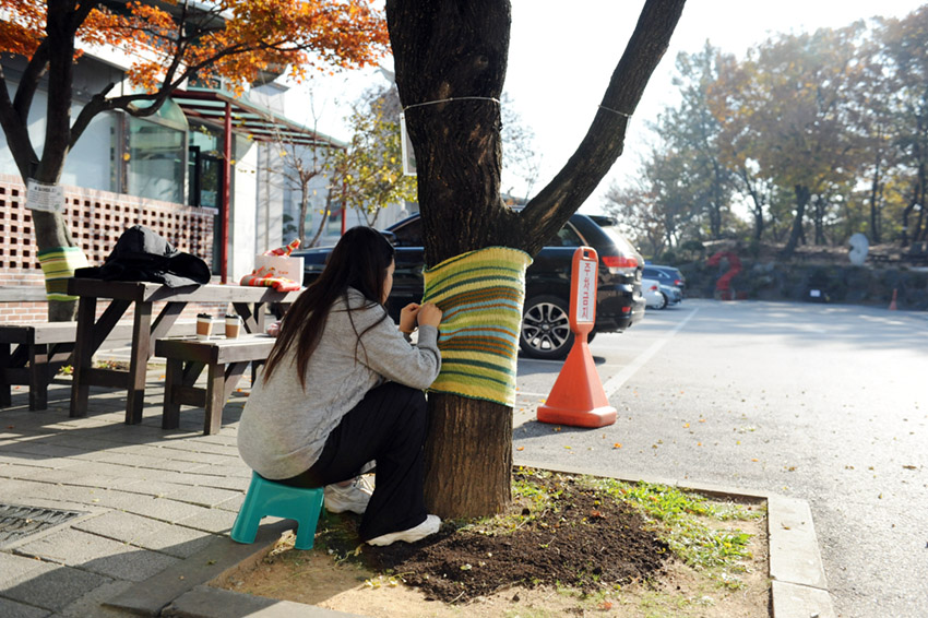 옷을 입혀두니 나무들도 따뜻하겠지만 보는 이들에게도 포근함이 전해지는 것 같습니다.