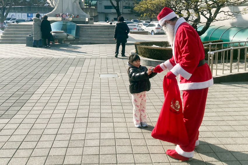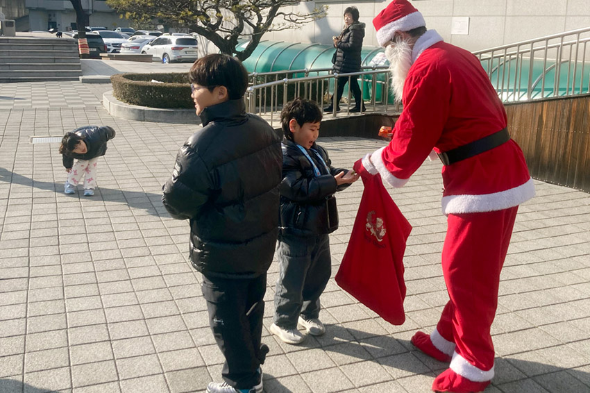 청아공원에서 산타할아버지께 선물받고 사진도 찍어가세요.