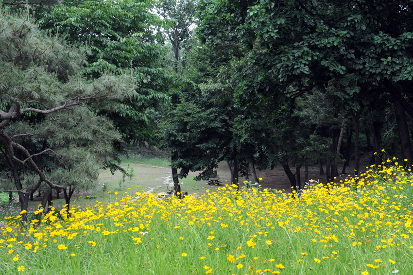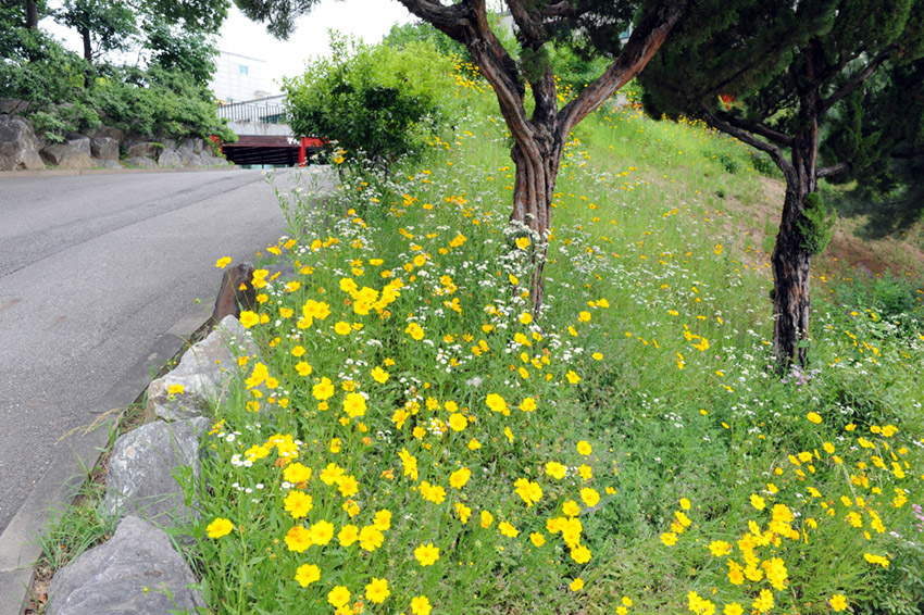 요즘 청아동산은 금계국과 개망초가 화려하고 수수한 자태를 뽐내고 있습니다.