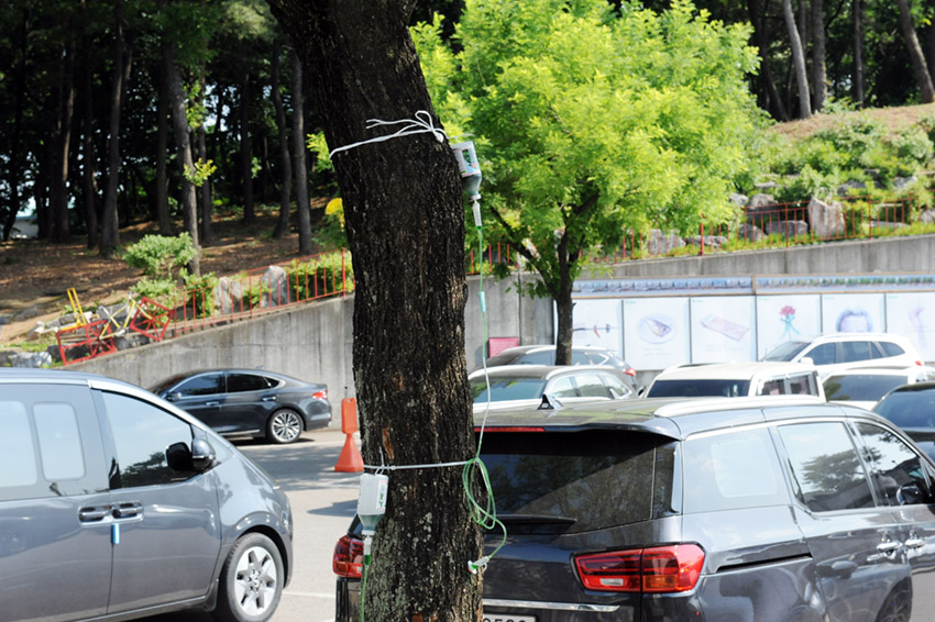 날이 가물어서인지 상태 안좋은 나무에는 영양제도 주고 있습니다.