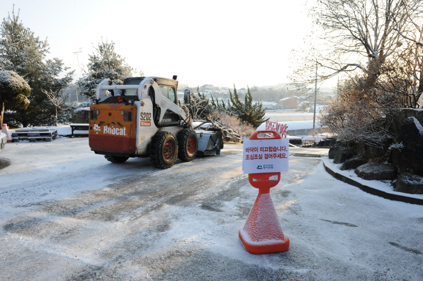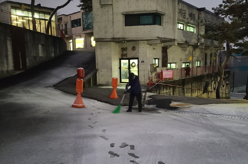 다행히 큰 눈은 아니었지만, 청아지기들 아침일찍 출근해서 제설작업을 했습니다.