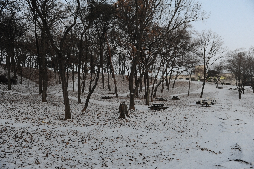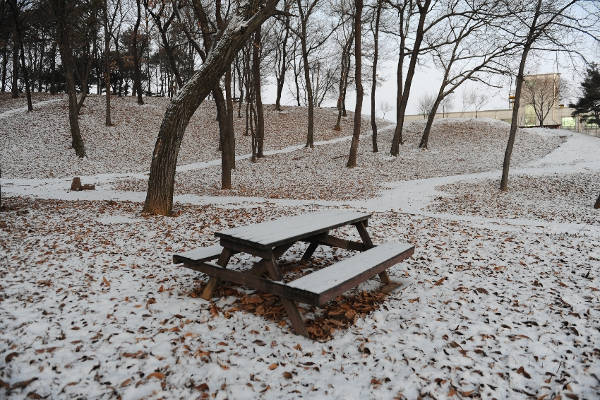 어젯밤 내린 눈이 공원 곳곳에 소복하게 내려앉았습니다.