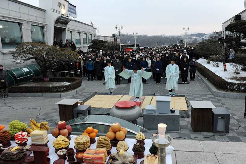 설날을 맞아 아침 8시에 청아비 앞에서 청아공원 모든 영혼들께 합동차례를 올렸습니다.
